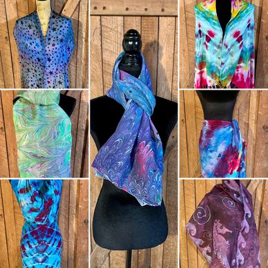 Find what makes your wardrobe pop. Hand batiked silk and bamboo scarves, marbled silk scarves and painted silk scarves. Ice dyed sarongs. Each unique as they are hand designed for you. Contact us for custom work.